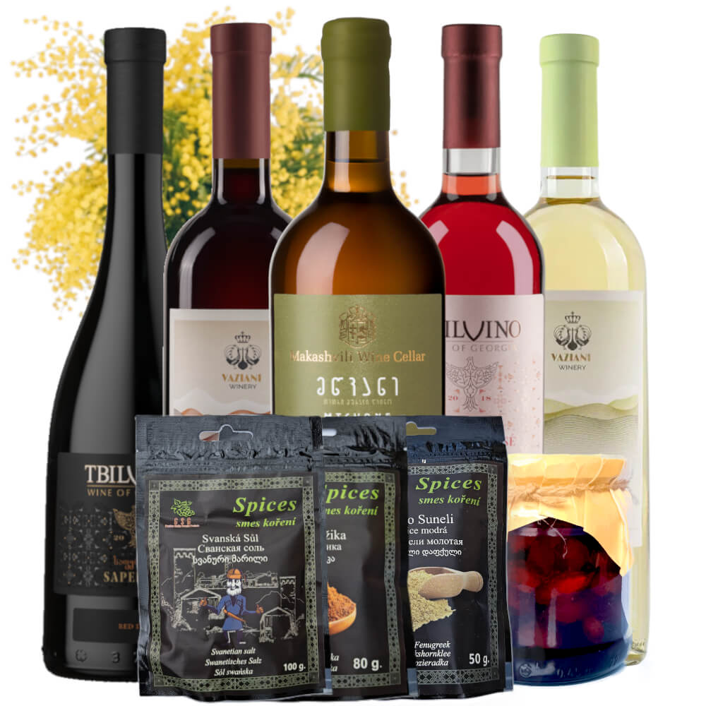 Unser liebevoll zusammengestelltes Georgisches Osterpaket „Fest der Aromen“ vereint charakterstarke Weine mit traditionellen Gewürzen und einer fruchtigen Spezialität – perfekt für festliche Tafeln, gemeinsame Momente und besondere Geschenke.